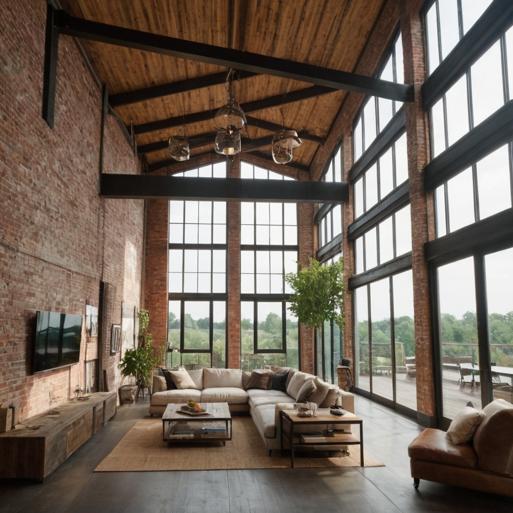 High ceilings and expansive windows are hallmarks of industrial lofts, allowing for abundant natural light and a grand sense of space. Consider installing skylights or utilizing large glass doors to further enhance the room’s openness and luminosity.
