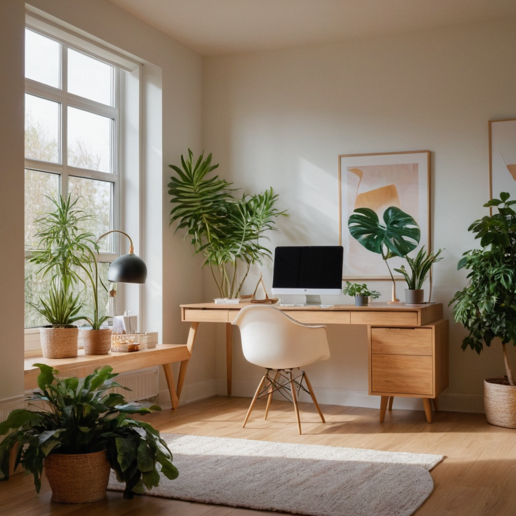 Practical advice: Position your desk near a window to maximize natural light during the day. Use floor or table lamps with dimmable settings for adjustable lighting that complements natural light levels throughout the day. Avoid harsh overhead lighting as it can cause glare on screens.