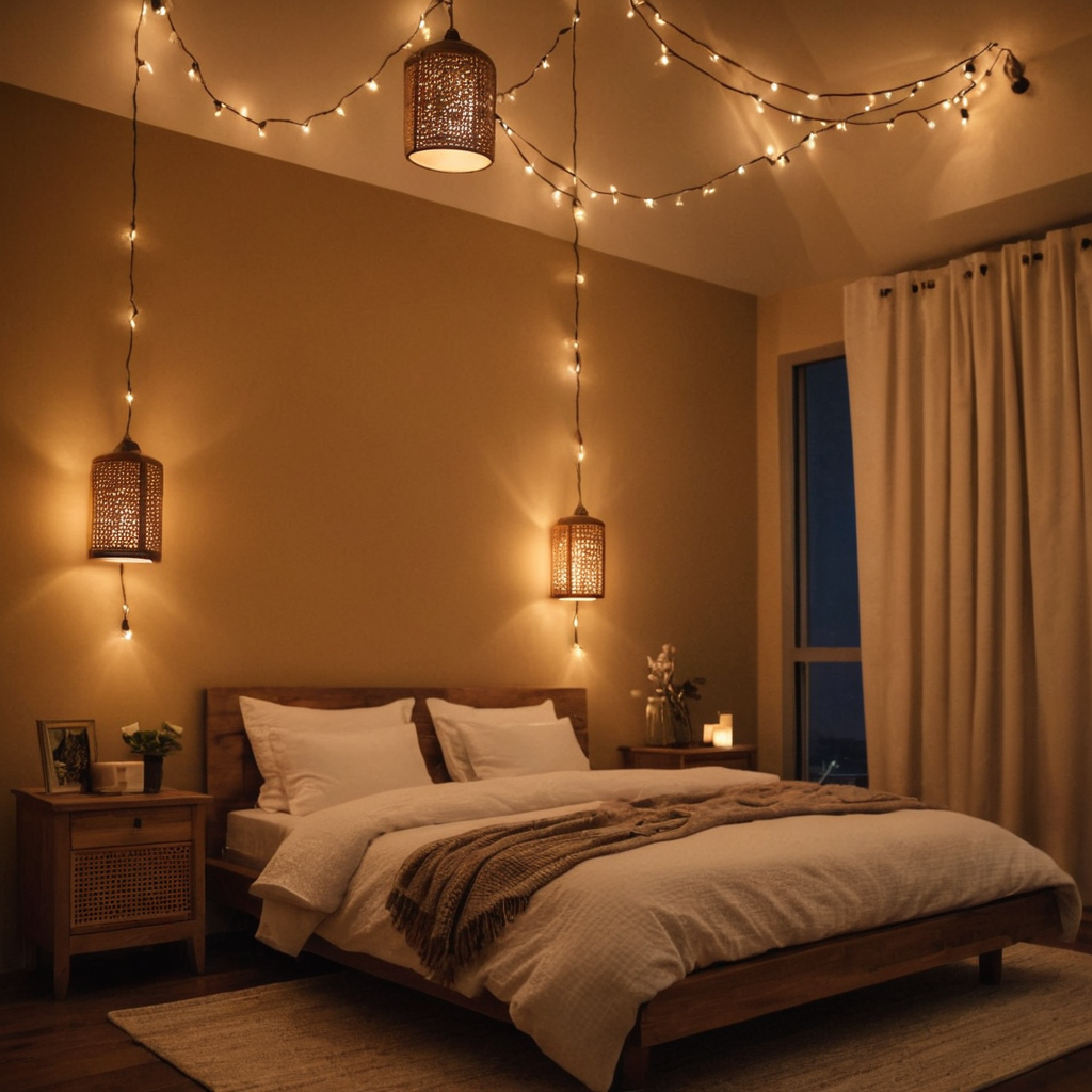 Lighting in boho chic design should evoke warmth and intimacy, creating a cozy ambiance that complements the natural elements of your decor. Soft, warm lighting can be achieved through various fixtures like string lights, lanterns, or lamps with diffused light sources.