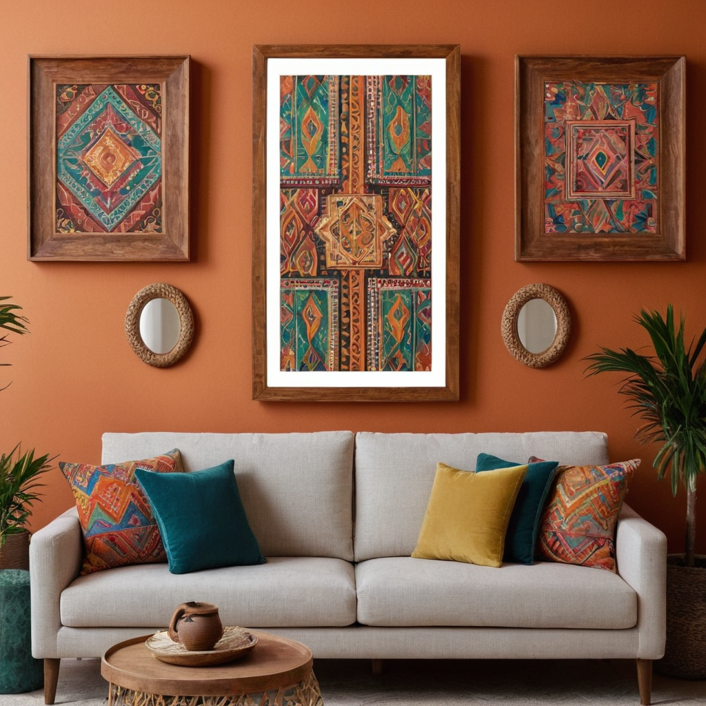 Wall art is crucial in setting the mood and personality of your space under the boho chic style. Opt for pieces that are colorful, bold, and often feature abstract or tribal designs to add a unique flair to your decor.