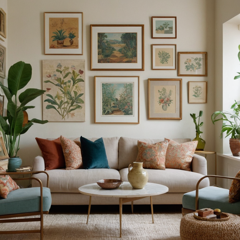 Artistic layering is another essential aspect of the boho style, creating a visually interesting space that reflects your personality and creativity. Use various art pieces like vintage paintings, hand-painted plates, or colorful ceramics to decorate walls and shelves. Mixing different types and sizes of frames can add depth and interest. Consider hanging items at different heights for an asymmetrical look.