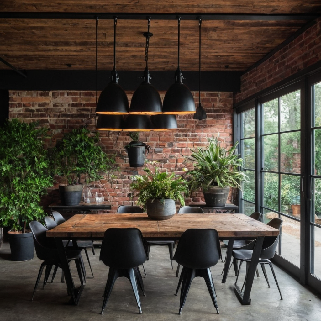 Incorporate metal accents by selecting furniture pieces made from iron, steel, or copper. Mix these metals with rustic wooden tables and chairs for contrast. Use industrial-style lighting fixtures to bring the look together and add depth to your space.