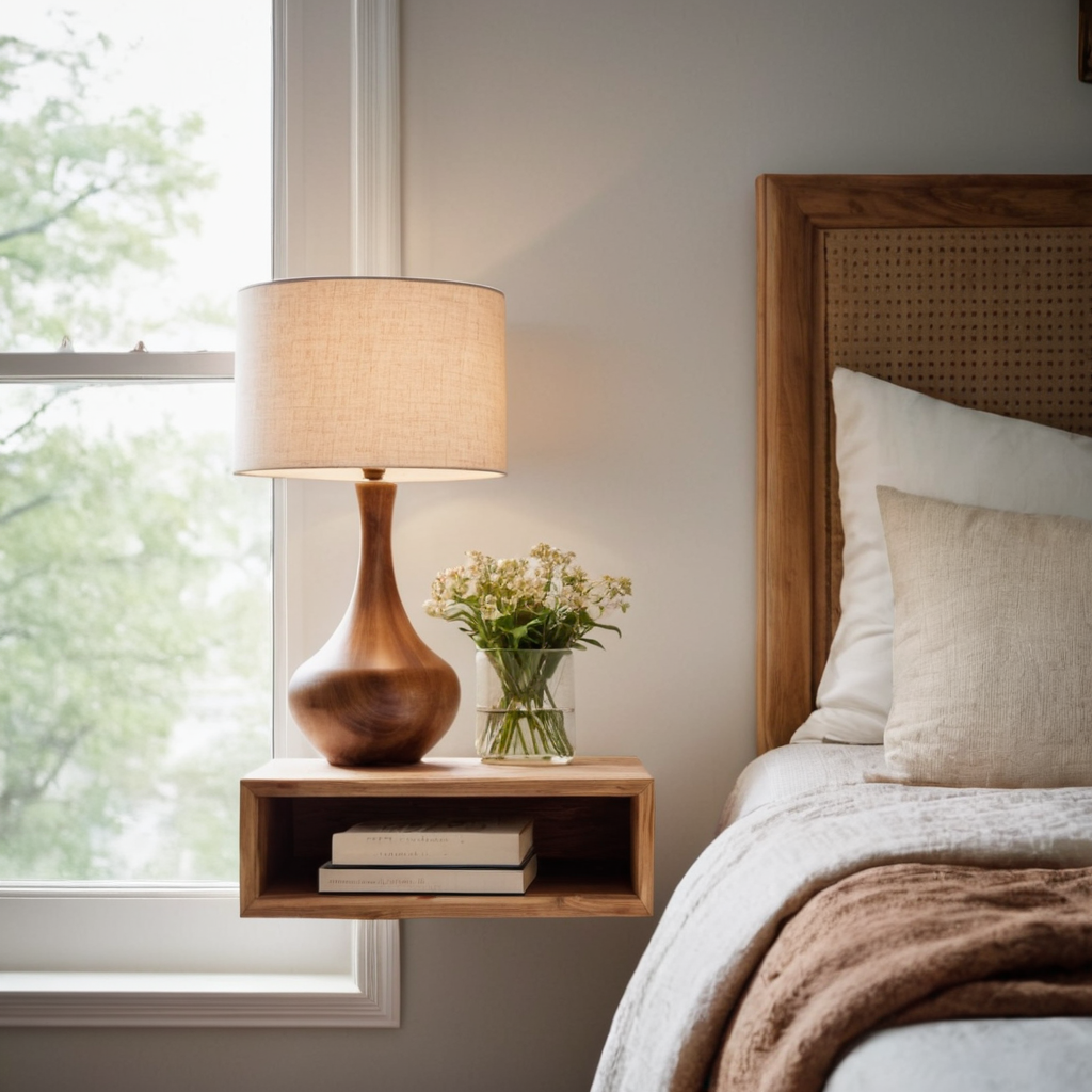 Floating nightstands save precious floor space while providing necessary storage for bedside items in small bedrooms or compact apartments. These furniture pieces are typically mounted on the wall and can be designed with drawers, shelves, or both to maximize utility without taking up visual room. Choose materials such as wood or metal that complement your existing decor and ensure the mounts are securely attached for safety. For styling, consider incorporating simple yet stylish lamps and small decorative items like vases or picture frames atop these nightstands to enhance their look.