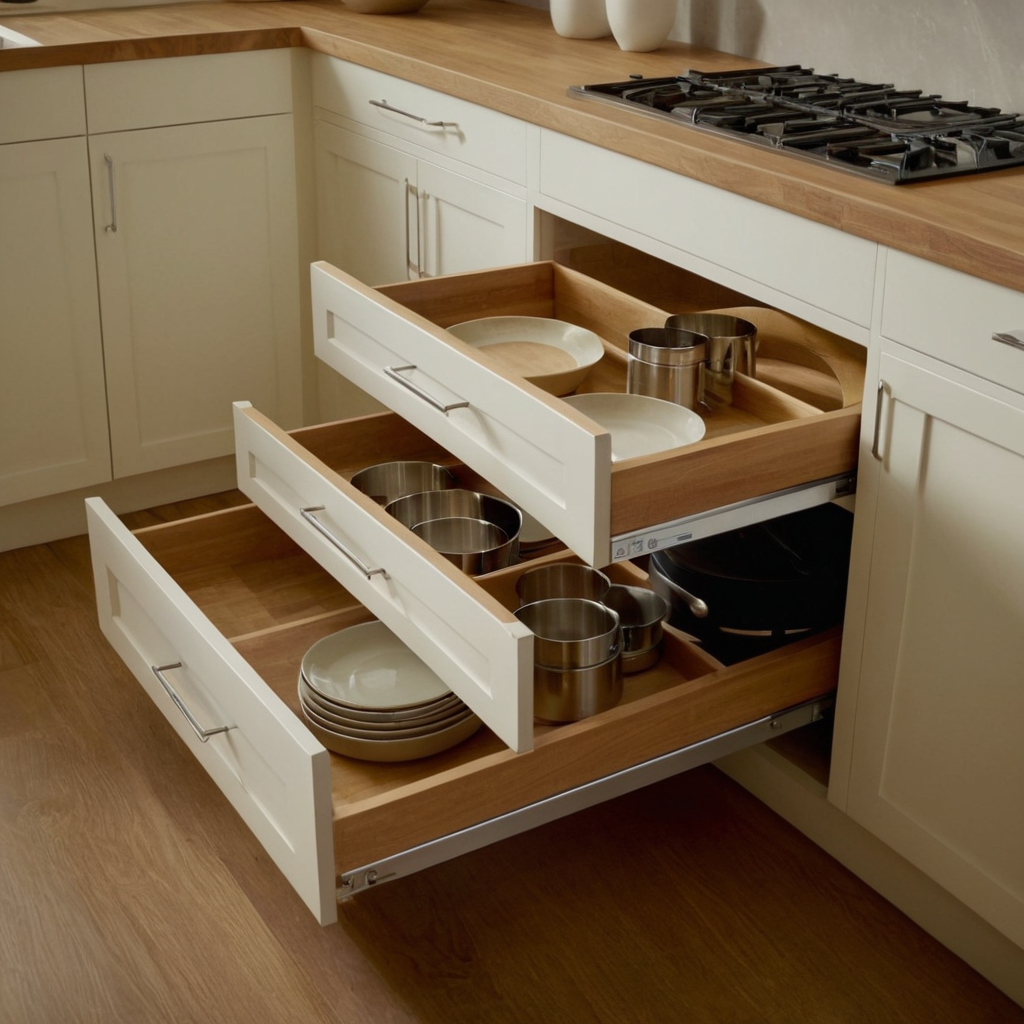 Smart cabinetry can significantly enhance both the storage capacity and visual appeal of your kitchen. Features like pull-out drawers, lazy susans, and spice racks make organizing a breeze while keeping everything within easy reach.