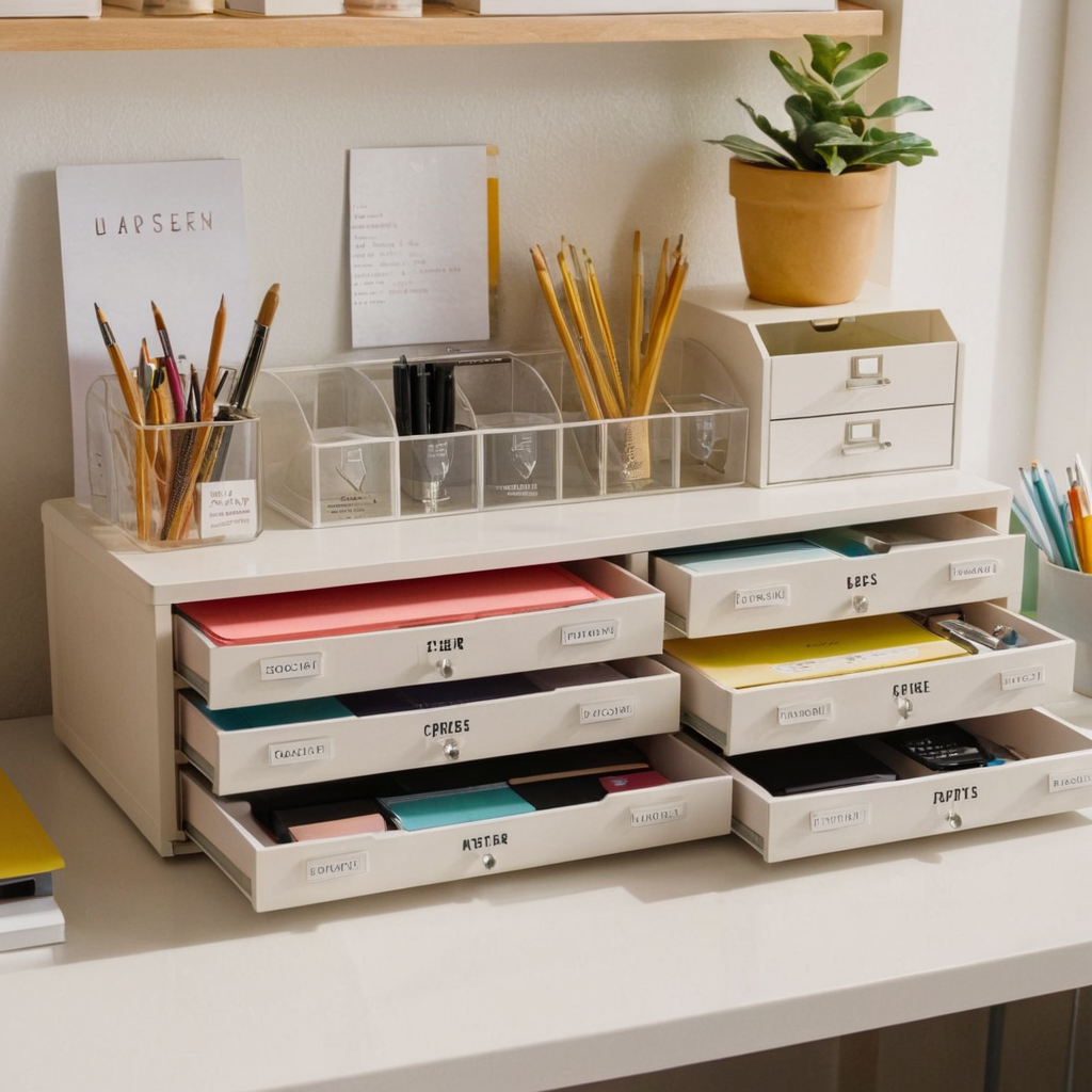Use desk organizers, drawer dividers, and label everything clearly to maintain order. Consider the size of your desk and choose storage solutions that fit seamlessly into your space, ensuring easy access when needed.