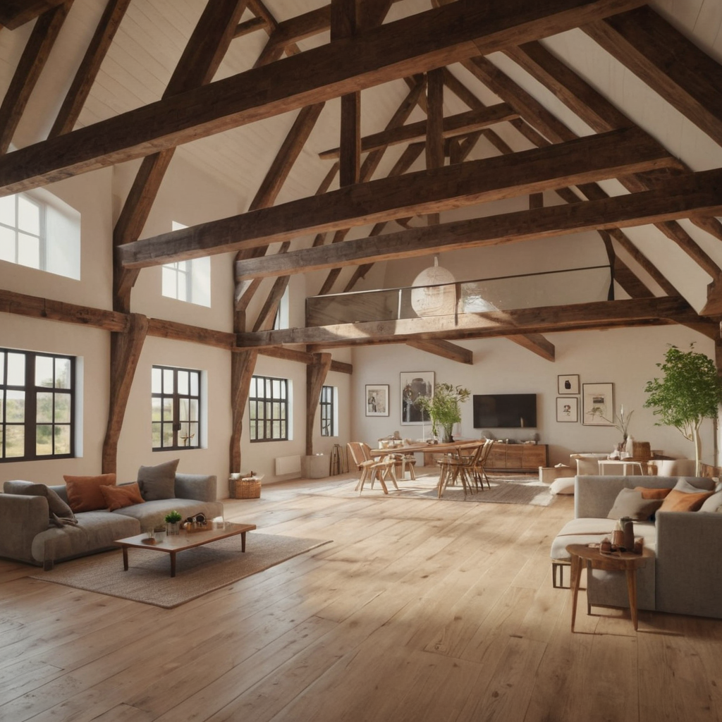 High ceilings are typical in industrial lofts, often supported by exposed wooden or metal beams that add to the space’s character. These features not only create an open feel but also draw the eye upwards, making the room appear larger.