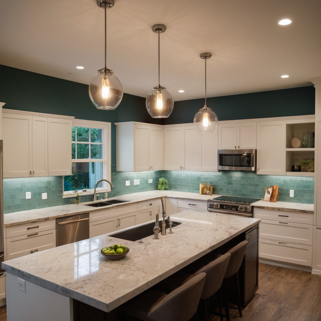 Incorporate different types of fixtures like recessed lights for general illumination, pendant lights above islands or dining areas, and under-cabinet strip lights to illuminate work surfaces. LED bulbs are energy-efficient and come in a variety of color temperatures that can be adjusted according to the time of day.