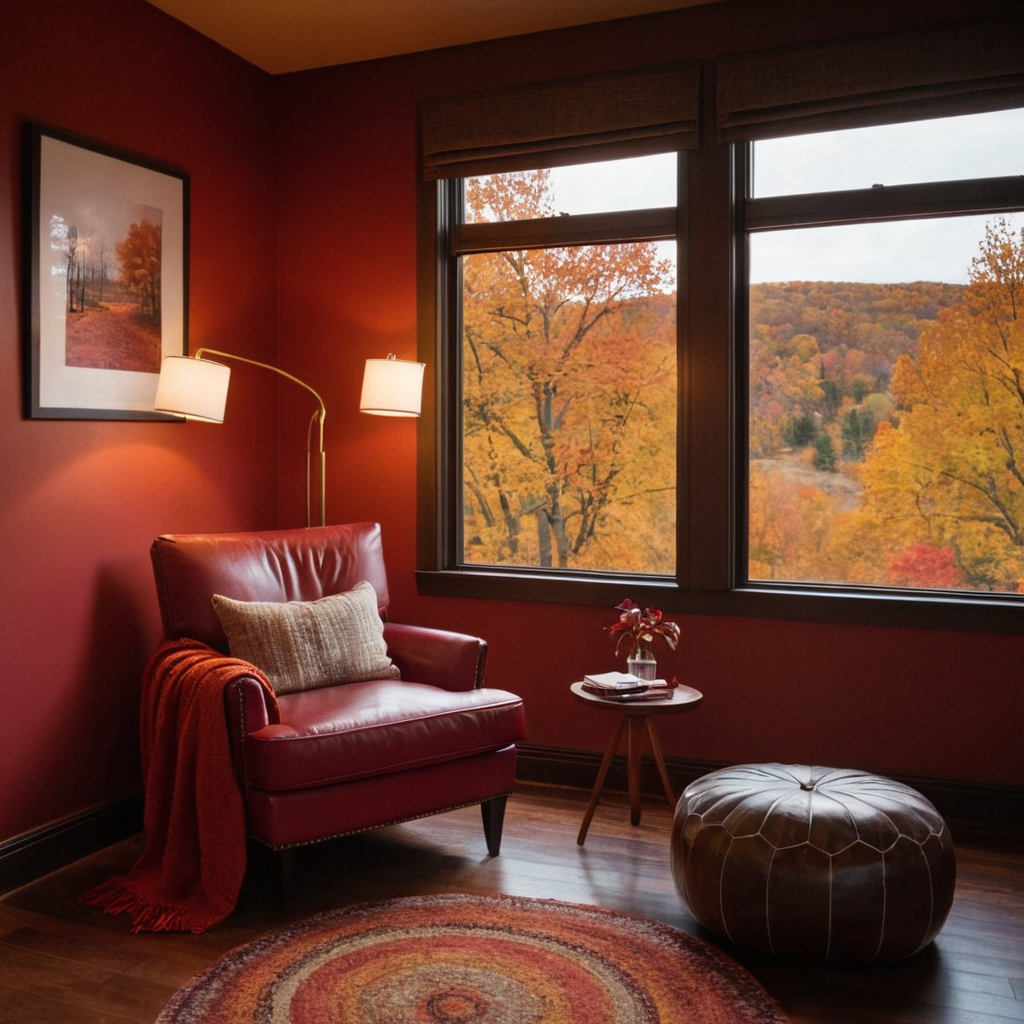 Practical Advice: Use deep browns in wall paint or wooden furniture to set the tone. Layer with throw blankets in rich crimson or orange hues, paired with soft lighting fixtures like floor lamps.
