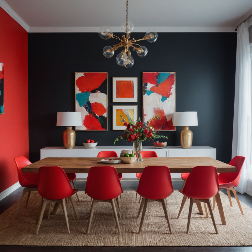 Practical Advice: Use contrasting colors sparingly to avoid overwhelming the room. Opt for one main color as the base (like black or white) and then add accents of a vibrant color through furniture or accessories.