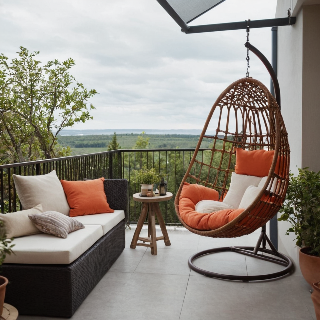 Opt for pieces like a small sofa or lounge chairs paired with cushions and throws for added comfort and style. A hanging chair can provide a unique seating option while saving space.