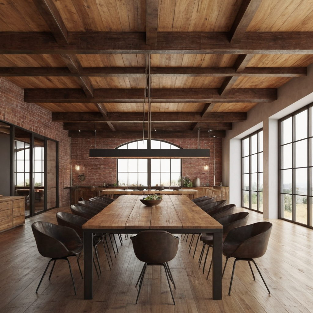 Incorporate raw wood by using it for structural supports in exposed beam ceilings or as dining tables and shelves. The natural grain can be complemented with metal accents to tie into other industrial elements.