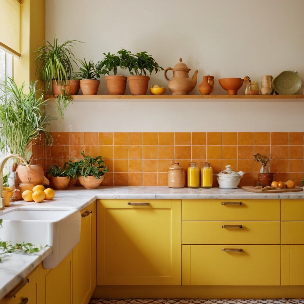 Summer’s bright, sunny days can be captured in your home through bold colors paired with warm earth tones. Think of vibrant yellows, oranges, and reds contrasted against the stability of browns and terracottas. This palette not only brings energy into spaces but also reflects the warmth and vibrancy of summer.